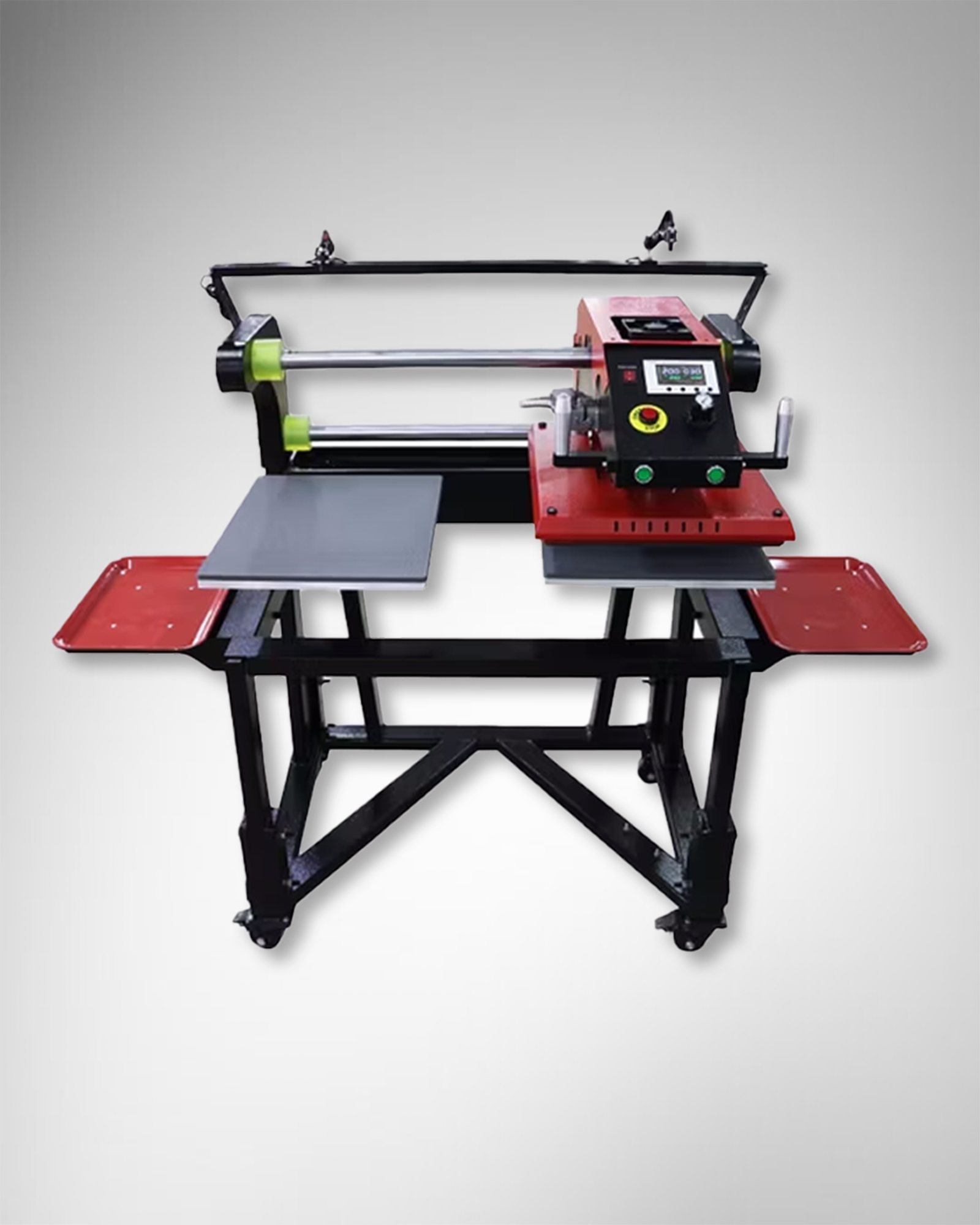 This machine includes laser crosshairs, for easier handling when placing products.
